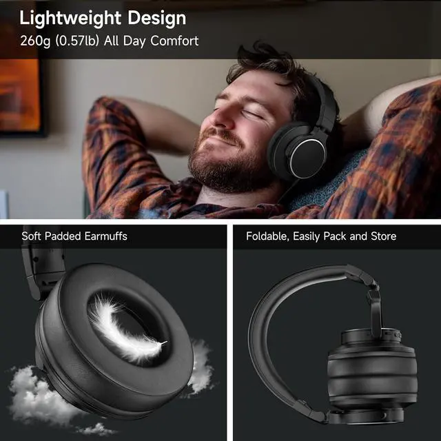 WIRELESS HEADPHONES: Feature the latest Bluetooth 5.4 chip for quick pairing in just 1-3 seconds after turning on. With a built-in 800mAh battery, they provide 100 hours of continuous playtime after one fully charge ( device switching is not existent). And virtually unbreakable connection up to 33 feet (10 meters)
