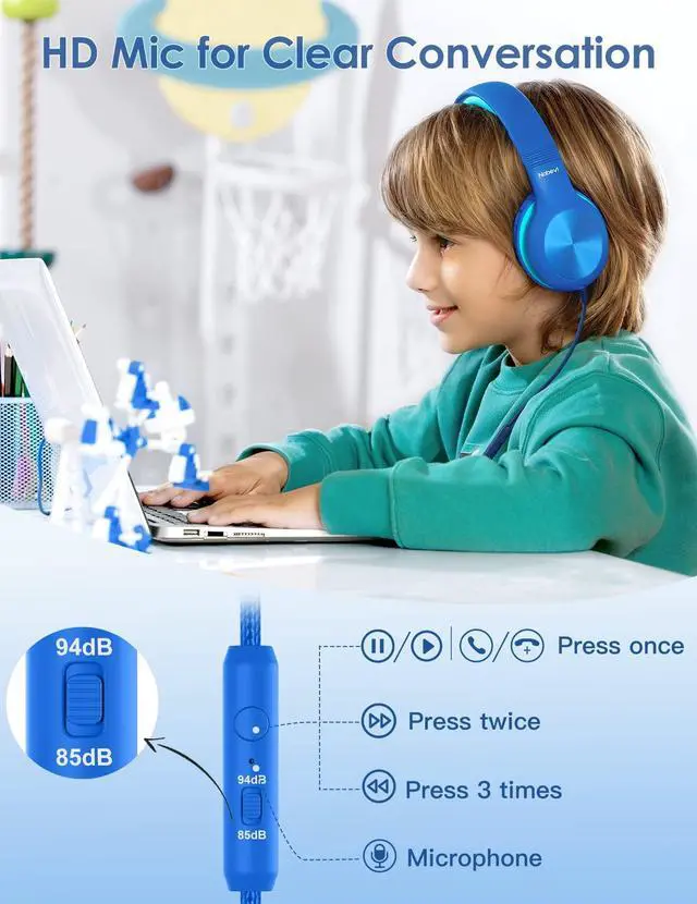 Nabevi kid over-ear headphone with 3.5 mm plug is compatible with most electronic devices, such as mobile phones, tablets and computers