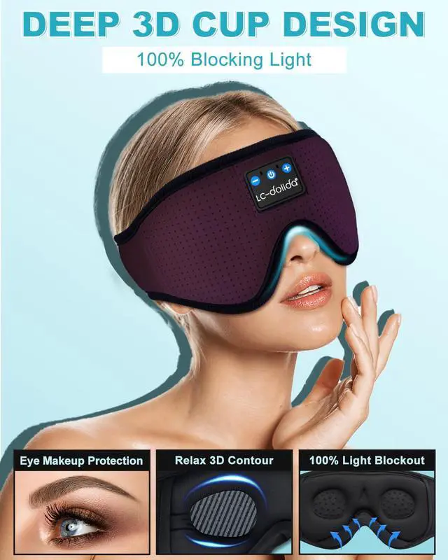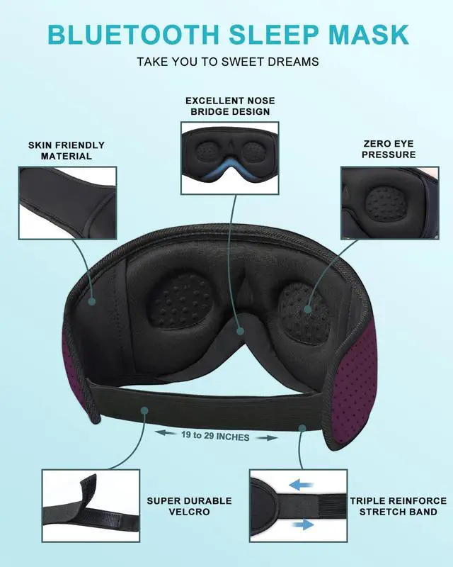 3-in-1 Sleep Headphones, Bluetooth Sleep Mask & Eye Mask- Our Bluetooth sleep headphones with a soft headband let you enjoy hands-free music while blocking out disturbances. Perfect for naps, insomnia, travel, meditation, yoga, and sleep