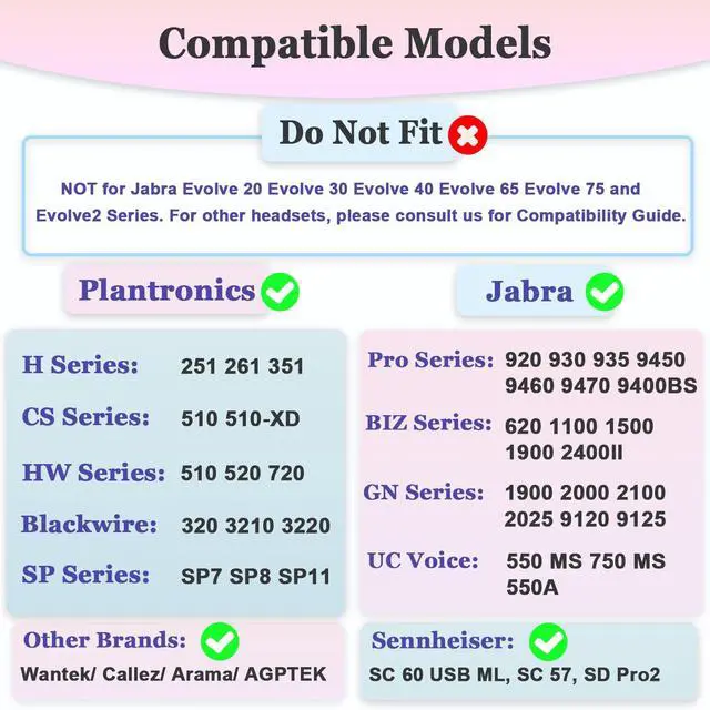 Do not buy the item if you can’t find your headset model in list. For other headsets, please consult us for Compatibility Guide.