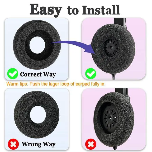 Made from extra thick foam, these ear pads comfortably fit your ears, making them the perfect choice for all-day office use. These pads are compatible with Plantronics, Jabra, Callez Wantek Arama and most standard 58mm (2.28") headphones. We have also created a step-by-step video guide to ensure quick, tool-free installation.