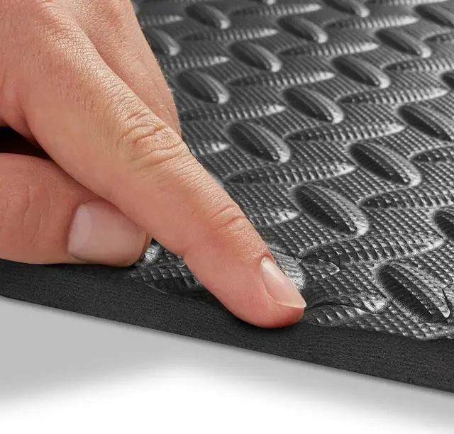 Created of 1/2" thick EVA foam, each interlocking puzzle piece is a square tile that can be customized to fit your space. This material is beyond versatile! It is waterproof, which makes it perfect for workout rooms, home gyms, and even as a childrens playroom flooring. It is easy to clean and works great in places prone to moisture. If youre looking for affordable, convenient, and comfortable options for flooring for your home workout area, look no further than our interlocking floor mat!