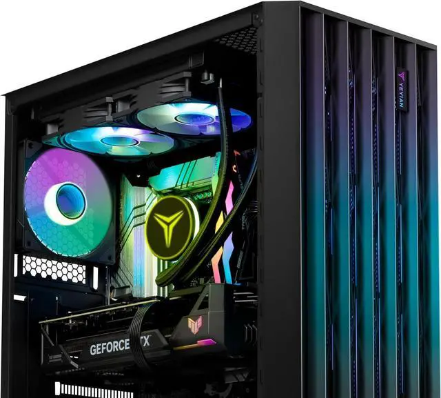 The advanced cooling system, with high-quality components and an optimized airflow design, ensures that this PC stays cool even under the most demanding conditions. With liquid cooling, the cooling system keeps all internal components at ideal temperatures to prevent overheating and guarantee stability and longevity, even during long gaming sessions or intensive tasks.