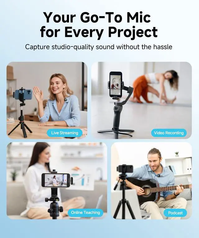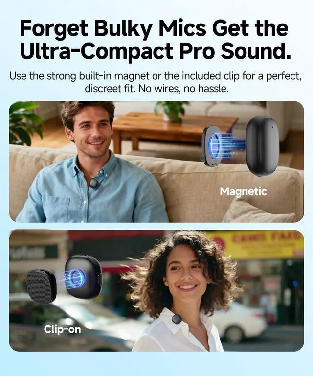 | Special Feature | 10g Lightweight, 64FT Wireless Transmission, 40H Battery, Mute Function,, AI Noise Reduction, DSP Noise Cancellation, Lavalier&handheld, CD Quality Sound, 1, 3-level Noise Cancellation, Magnetic Clip |