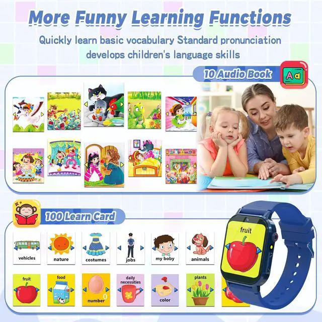 - Add NEW functions : 100 Learn Cards, 10 Funny Audiobooks, 3 Sports Modes. These learning cards function help children quickly learn basic vocabulary and develop language skills through standard pronunciation. Audiobooks cultivate imagination and language development through engaging storytelling, while different sport modes increase the fun of exercise.