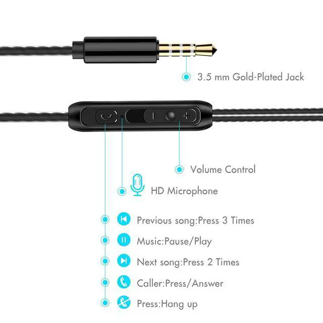 2.In-Line Microphone and Volume Control. Its in-line microphone and volume control allow you to answer your call by press the button on the cable, very convenient for you when you are running, in the gym or any kinds of sport, truly hands free. And you can also control your music by it, press one time for play/pause, two times for next track, three times for previous track.