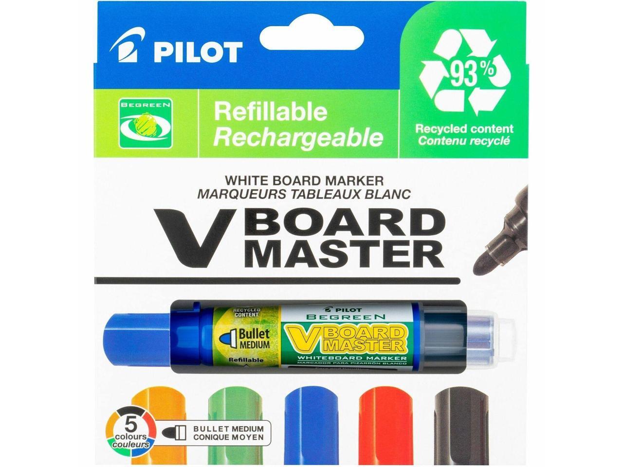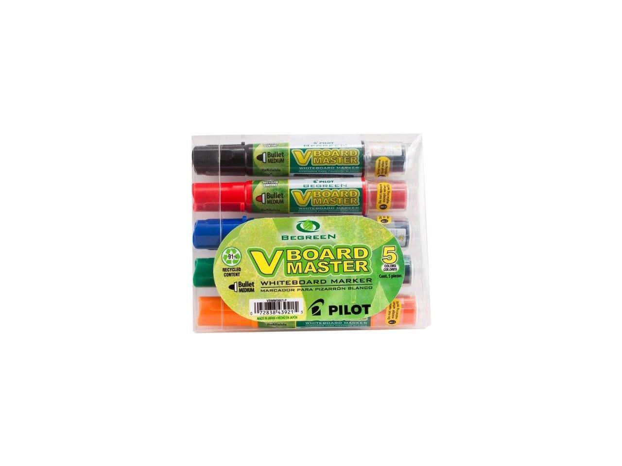 Pilot 43921 BeGreen V Board Master Med. Bullet Marker, Medium Marker Point Type - Bullet Marker Point Style - Refillable - 5/Pack