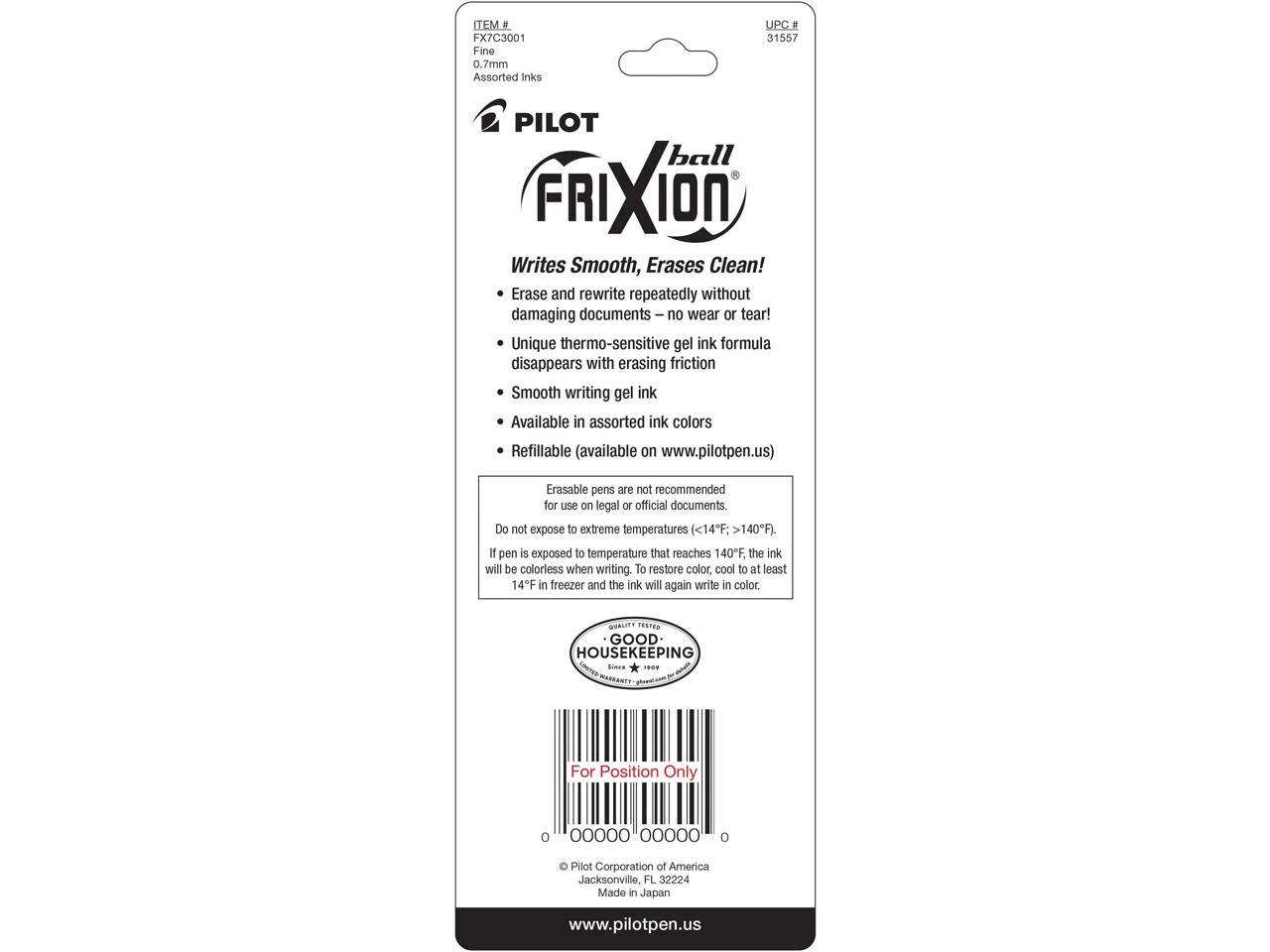 Pilot FriXion Erasable Gel Pens, Fine Point 0.7 mm, Assorted, 3/Pack