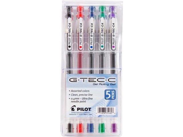 Pilot G-Tec-C4 Gel Rolling Ball Pen, Ultra Fine Point 0.4 mm, Assorted, 5/Pack
