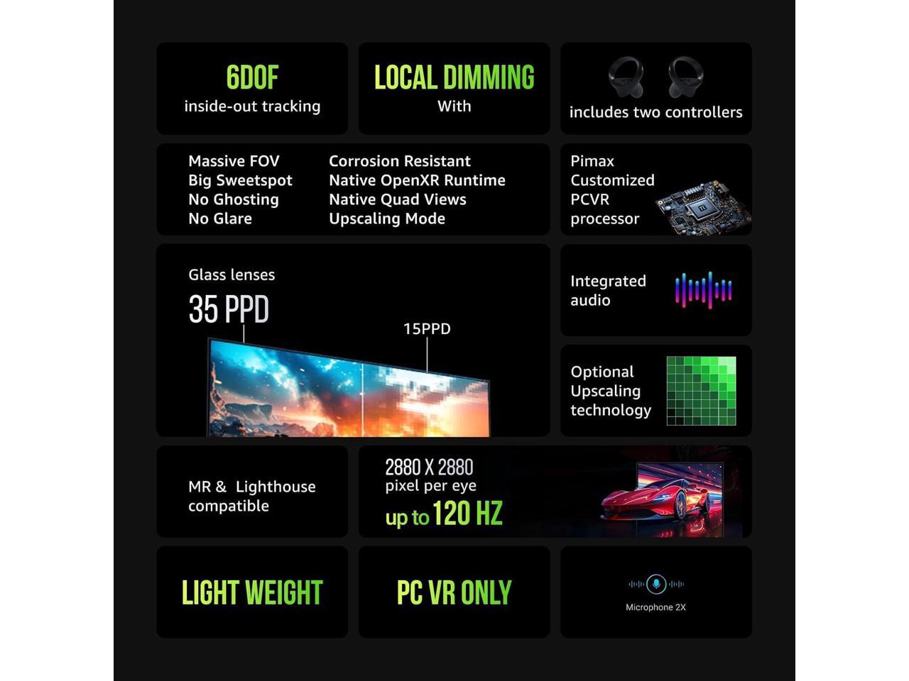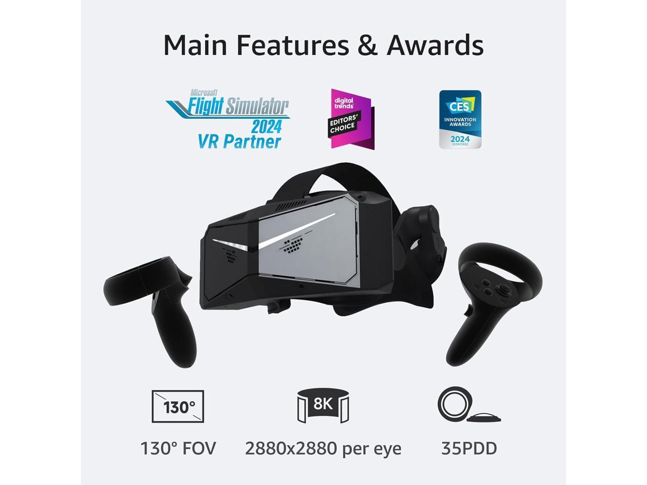 PIMAX Crystal Light Prime PC VR Headset with Controllers - 8K QLED with Local-Dimming, Up To 120Hz, Massive FOV, 6DoF, Compatible with Flight Simulators, MSFS, iRacing, Subscription Required