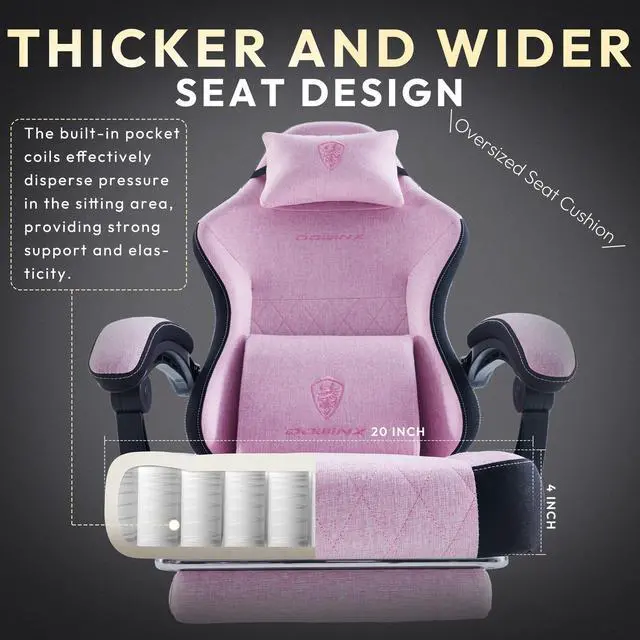 Pocket Springs: Experience unparalleled comfort with the Dowinx gaming chair's advanced pocket spring cushion, designed to provide the luxurious feel of a sofa. The individual springs distribute pressure evenly, enhancing support and ensuring an ergonomic fit, perfect for those long hours of gaming or work.