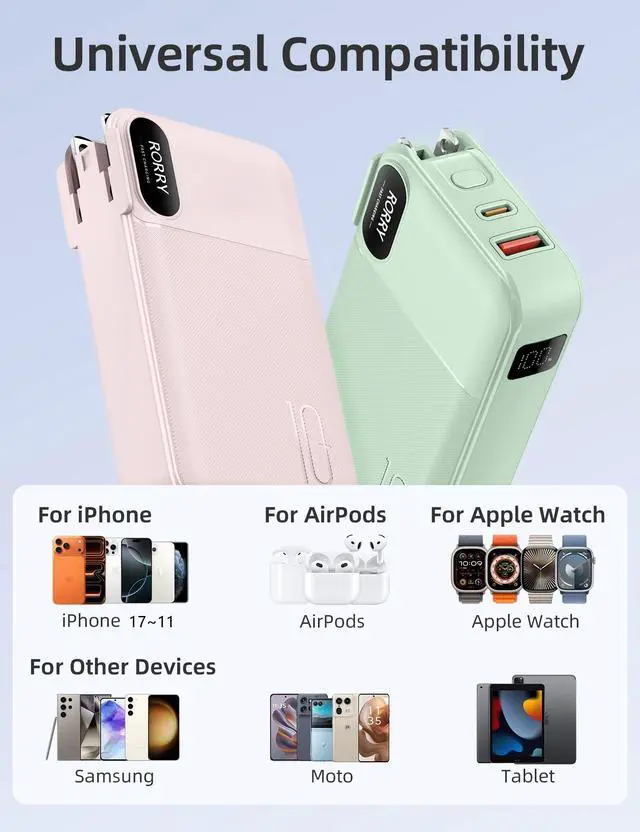 | Bulit-in Cables, AC Charger | Bulit-in Cable, 3-in-1 | Bulit-in Cables, 3-in-1, 30W | Bulit-in Cable, 3-in-1 | Bulit-in Cables, 3-in-1 | Power Bank, 3-in-1 Station | Keychain Charger for iWatch |