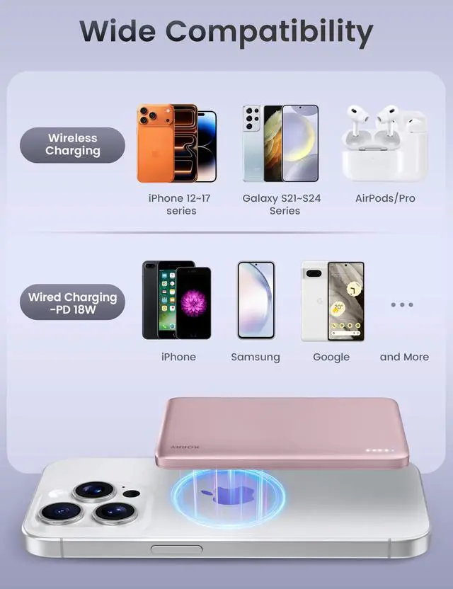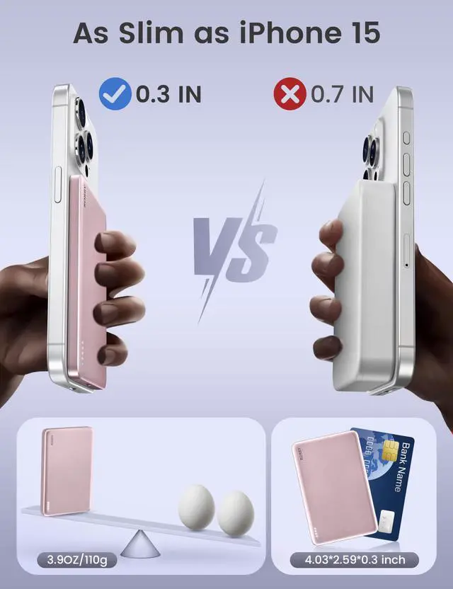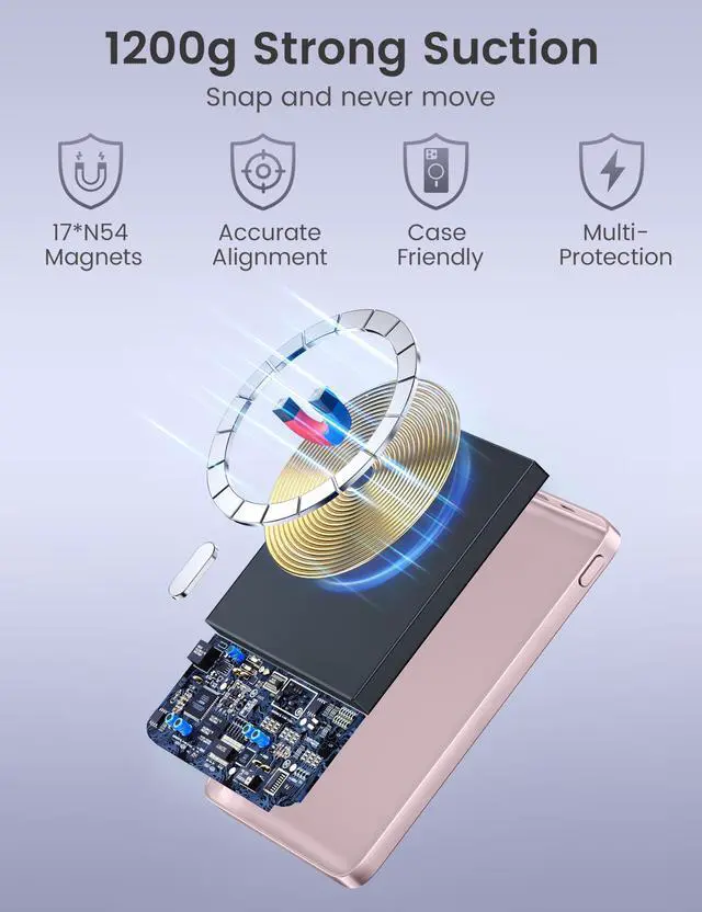 ![Alt view image 5 of 6 - for Magsafe Portable Charger, [0.3" Ultra Slim] Magnetic Power Bank,[Alloy-Made] 5000mAh Wireless Portable Charger, USB C Battery Pack 18W Fast Charging for iPhone 17/15/16 Samsung (Pink)](https://c1.neweggimages.com/productimage/nb640/C5M0D2603100YG9D93C.jpg)