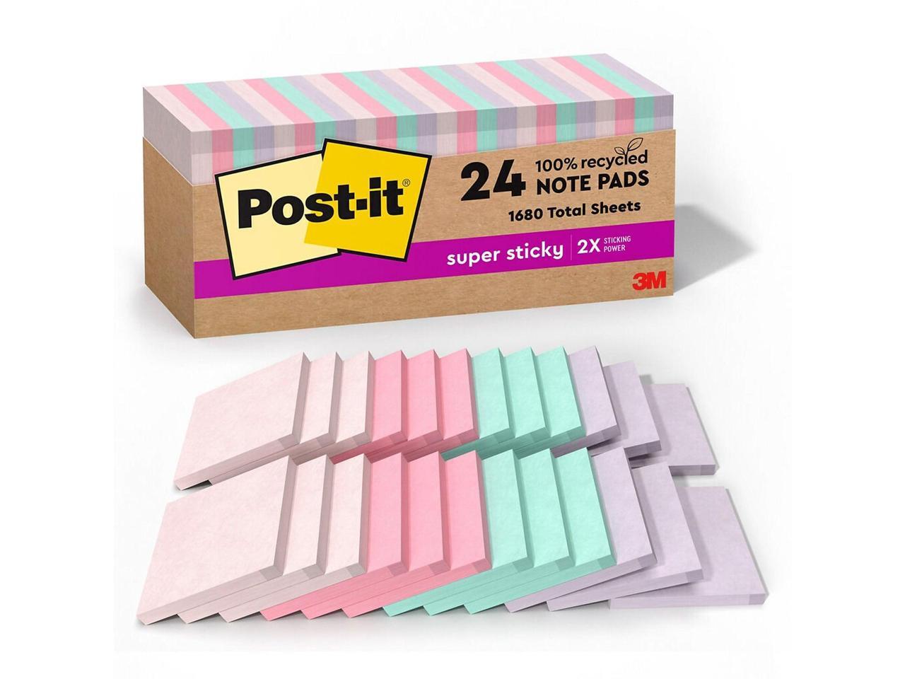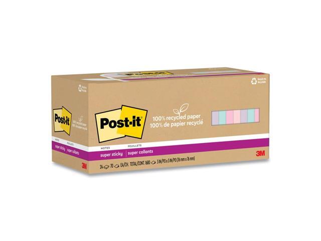 Post-it Recycled Super Sticky Notes 3" x 3" Wanderlust Pastels Collection 70 Sheet/Pad 24 Pads/Pack (654R-24SSNRPCP)