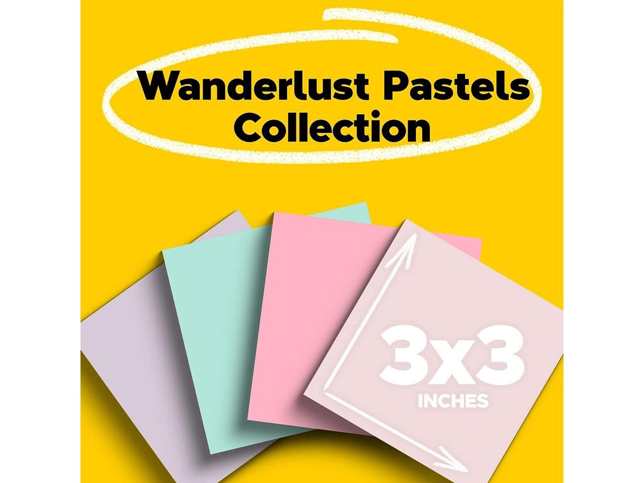 - 100% RECYCLED PAPER: Post-it Notes paper is sourced from certified and responsibly-managed forests. INTRODUCING THE WANDERLUST COLLECTION: Explore the dreamy vibes from the Wanderlust Pastels collection including Pink Salt, Positively Pink, Orchid Frost, Fresh Mint. ENHANCE YOUR