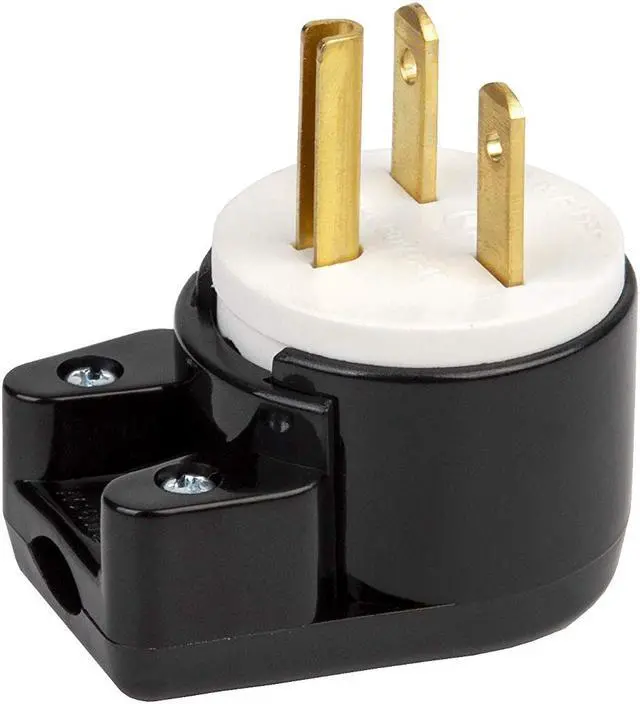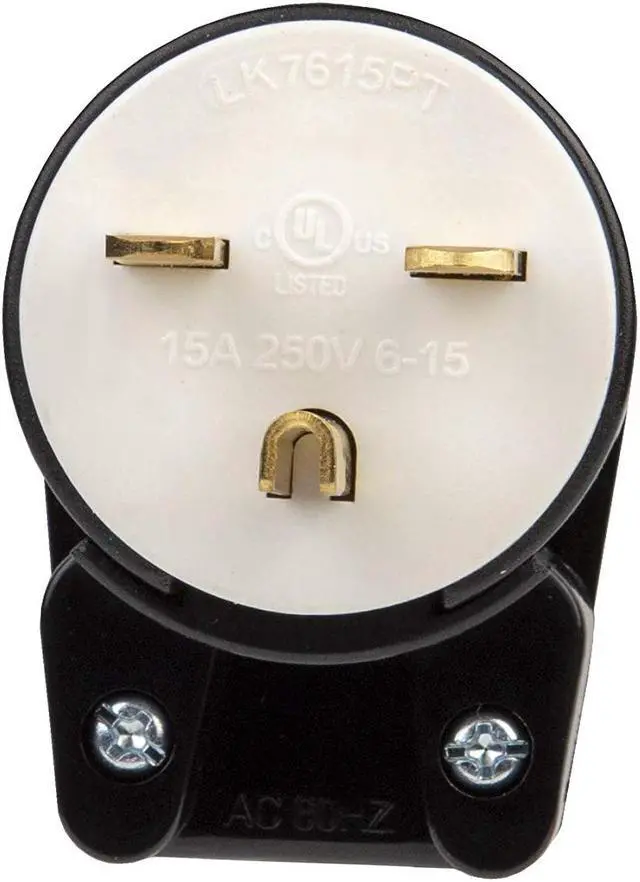 Rated: 15 amp, 250V. 2 Pole 3 Wire. Brass blades and contacts for better conductivity and lower resistance. Screw down strain relief keeps your cable secure and tightly locked. Internal Wiring Chambers for isolating individual wires, preventing arcing, flashover or stranded wire. UL Listed, CSA Certified