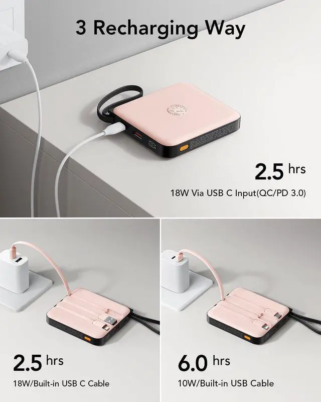 | 20W for iPhone?Built-in cables | Built-in cables | Built-in Wall Charger | 4 built-in Cables & 22.5W | 4 Built-in Cables? 22.5W | 4 built-in Cables & 22.5W | 20W for iPhone?Built-in cables |