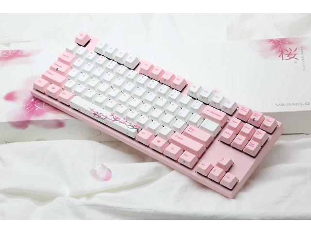 Varmilo VA87M Sakura TKL Gaming Mechanical Keyboard Cherry MX Red Switch 87 Keys Dye Sub PBT Keycaps NKRO Detachable USB Wired Pink and White