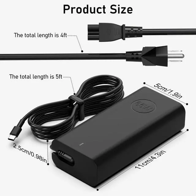 What's in the box:1x New Slim Dell 65W USB C AC Power Adapter,1x Power Cord