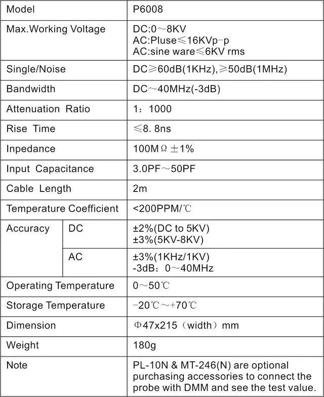 • Test Range: PINTECH P6008 high voltage probe measure current up to 8kV DC/16kV AC, for testing high voltage signals.