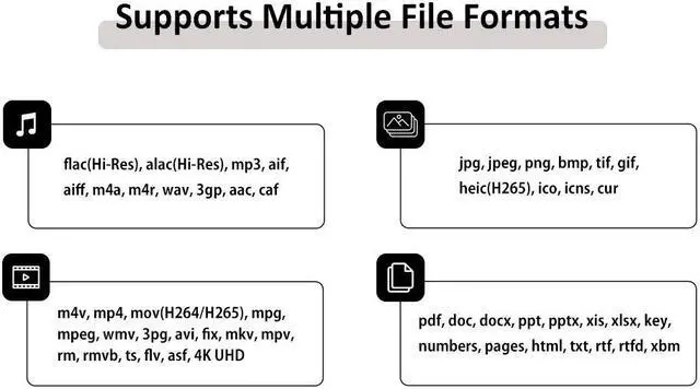 *** [Play Hi-Res Music Files] Enjoy high-resolution audio files, such as FLAC, directly on your iPhone or iPad using the iXflash app, which provides superior audio quality compared to MP3 files. The iXflash supports multiple audio formats, including FLAC, APE, AAC, AIF, M4A, MP3, and WAV, making it the go-to memory stick for iPhone users who demand the best sound quality.