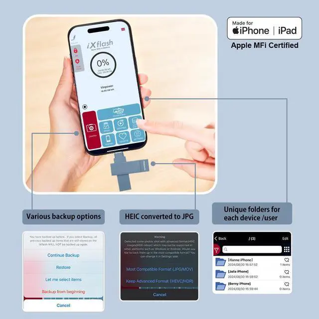 *** [Reliable True Capacity Storage] The iXflash guarantees its stated storage capacity, providing accurate space for your important files. Avoid low-quality alternativestrust the iXflash as your dependable iPhone external storage solution