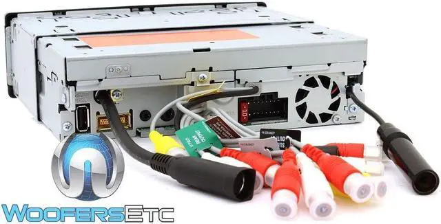 - inputs: rear USB port, two rear audio/video inputs, rear-view camera input