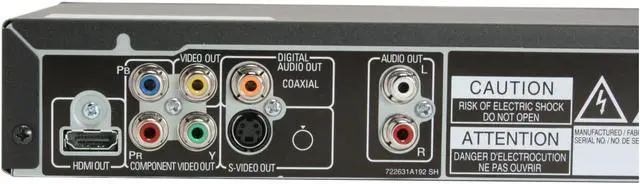 | Video | HDMI Terminal for Digital Audio/Video Out HDMI Upscaling (to View on 1080p) Official DivX Certified Product PureCinema 2:3 Progressive Scan I/P Simultaneous Output Video Adjust Function with Sharpness/Brightness/Contrast/Gamma/Hue/Chroma Level Control Zoom Function |