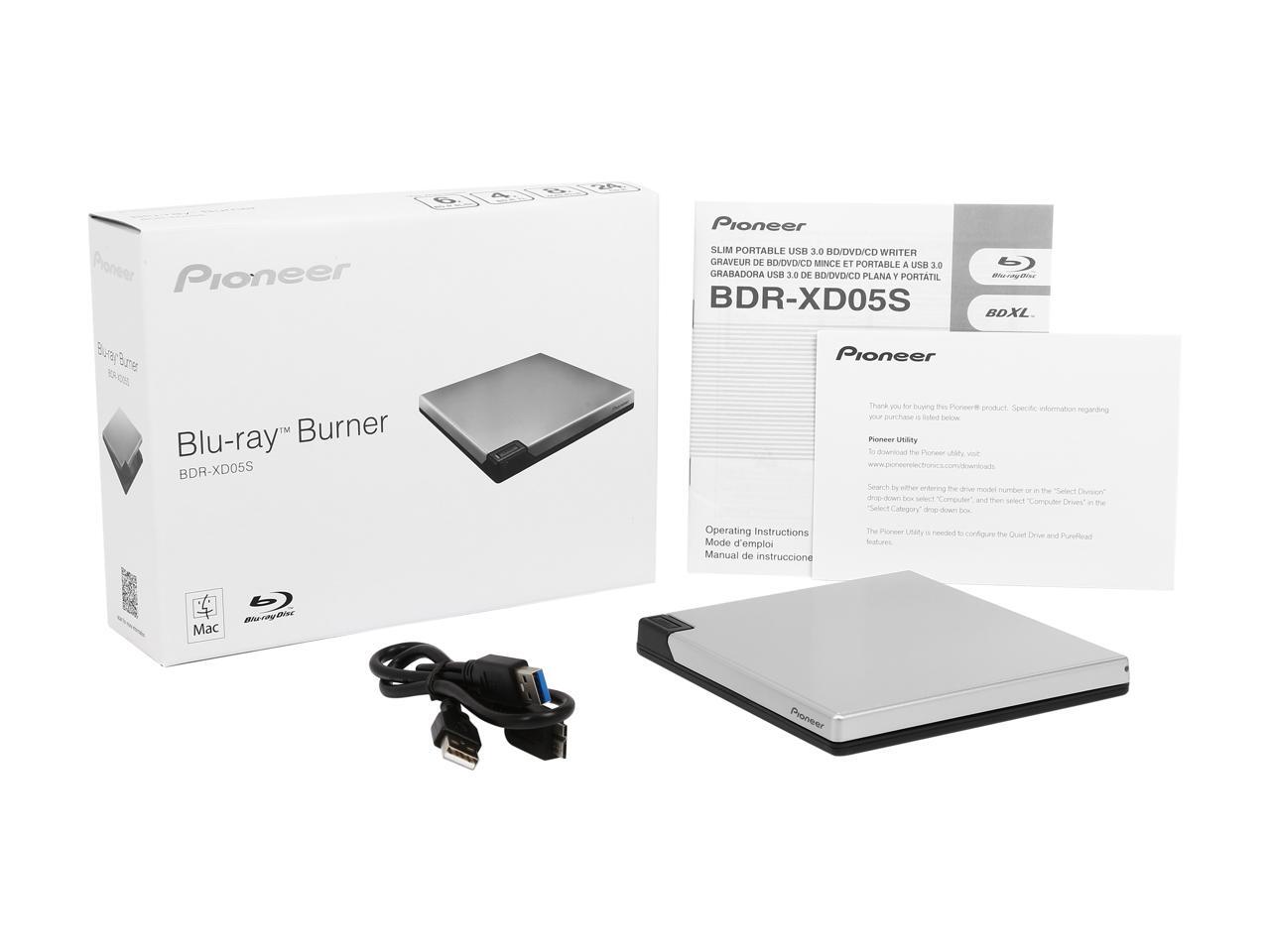Pioneer 6X Silver External Slim Portable USB 3.0 BD / DVD / CD Burner Model BDR-XD05S