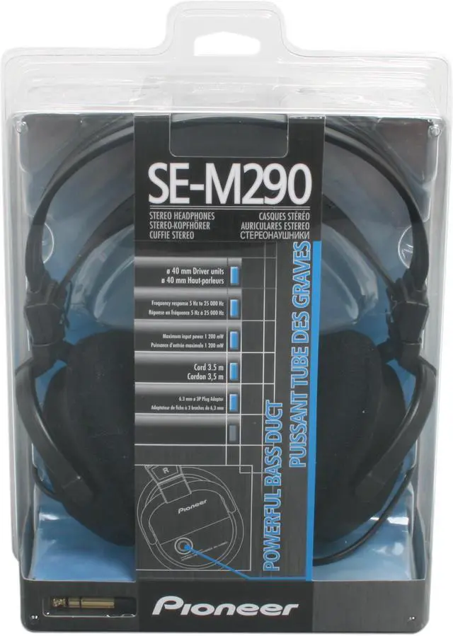 • neweggPowerful SoundWith large 40mm drivers and 1,200 mW maximum input power, the Pioneer SE-M290 delivers high quality audio reproduction, getting you closer to your music and entertainment. The ported over-ear design minimizes sound leak from the outside environment while delivering a powerful deep bass response and rich, balanced audio performance.