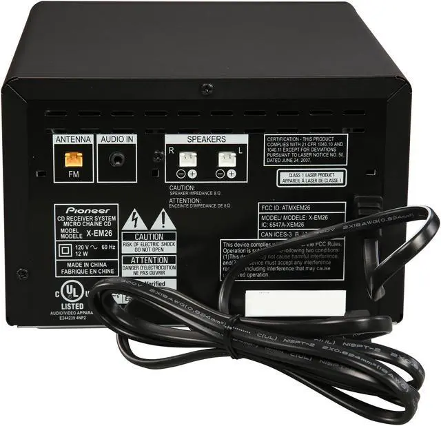 Specifications: The Pioneer XEM26 mini stereo system sold by AVGear offers better sound and more versatility than a traditional Bluetooth speaker; thanks to the full range speakers, and playback options from CD, front USB, FM Radio, or Bluetooth The built-in Bluetooth Wireless Technology lets you easily stream music from compatible devices such as smartphones, tablets, or personal computers. Enjoy your favorite songs with hassle-free connection. 7.6 cm Full Range Speaker Unit (x2). Sound Equalizer The “P. BASS” function emphasizes the bass frequencies for a powerful sound.