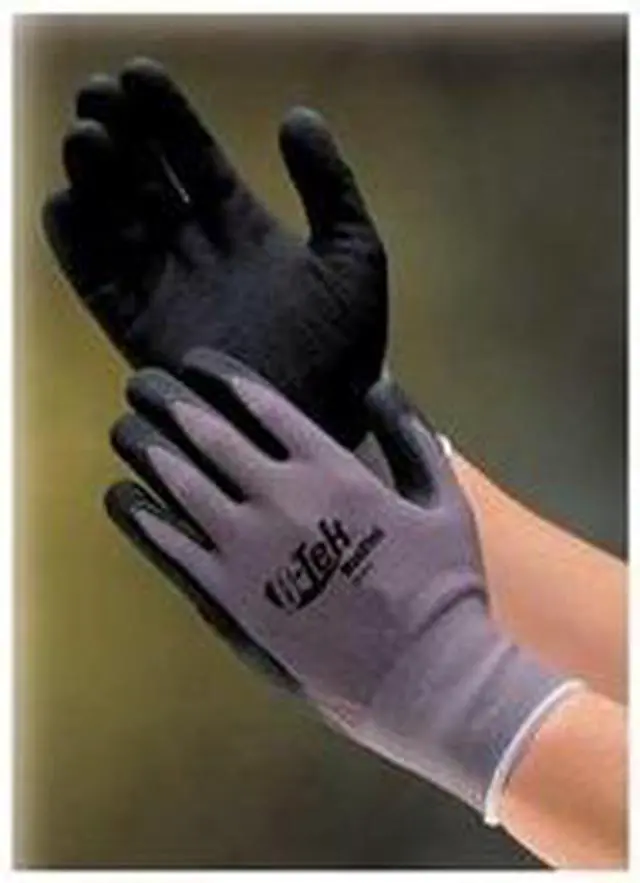 Coated Gloves, ANSI/ISEA Cut Level A1, Glove Style Knit, Knit Material Nylon, ANSI/ISEA Abrasion Level 3, Additional Hazard Protection None, Standards EN388, EN420, Reach, Okeo-Tex, CE, Glove Coating Cover Palm, Glove Hand Style Left and Right, Double-Dipped No, Coating Type Dipped, Glove Performance High Dexterity, Package Quantity 12
