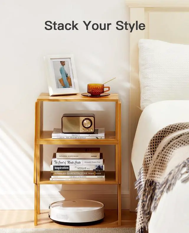 Pipishell bedside tables give you the flexibility to arrange your living space to fit your style. Stack the nightstands together for a taller storage solution with 3 levels of storage or separate them to use next to a bed or sofa where a shorter tabletop works best.