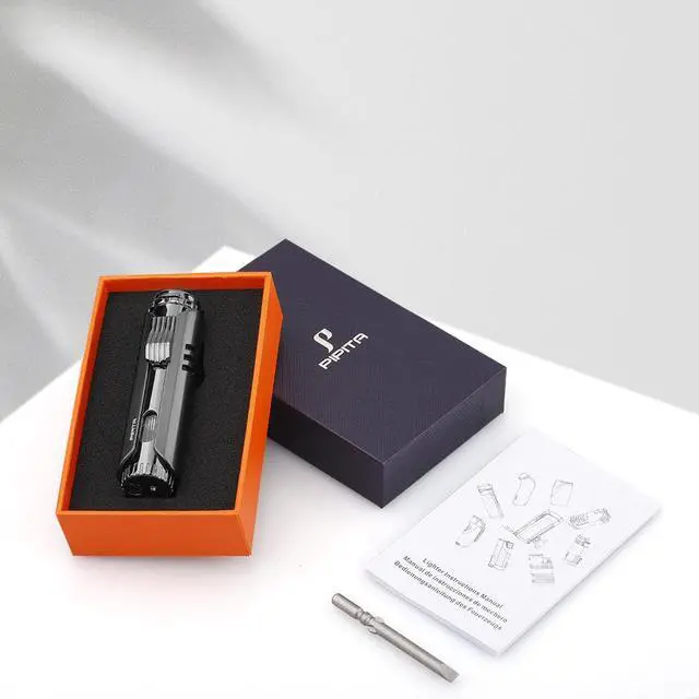 SAFE & EASY to USE: Sturdy Metal Material Body. Adjustable Flame Intensity. Refillable Butane Fuel. Lighter is shipped Without gas due to Air Mail regulation.