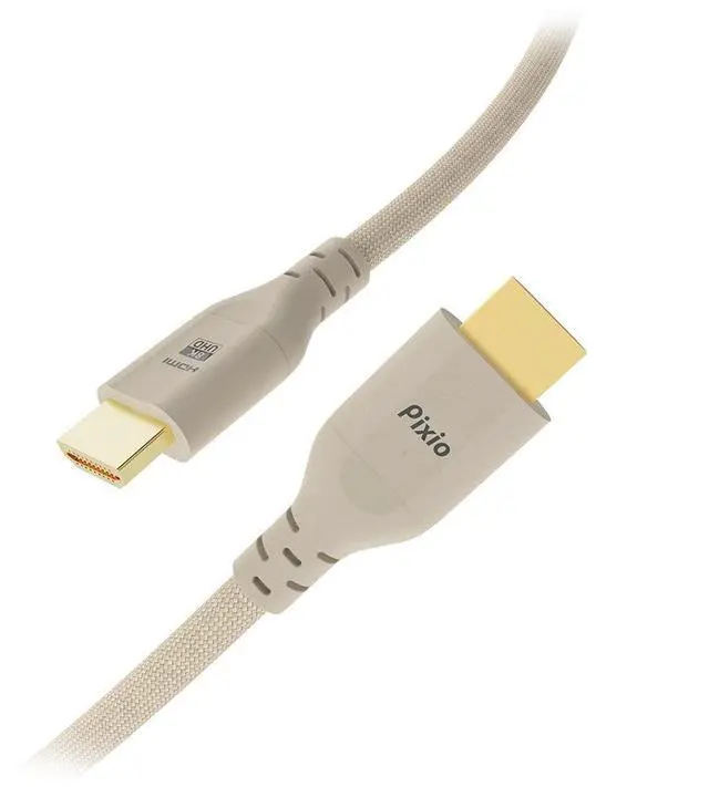 Pixio 8K HDMI 2.1 Braided Cable Ultra High Speed Certified 6.5FT 2M 8K 60Hz 4K 120Hz Nylon Braided, Gold Plated Connector, Anti-Breakage, HDR10+, dtsx, eARC, HDCP, Dolby Compatible Beige