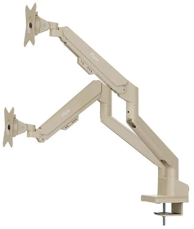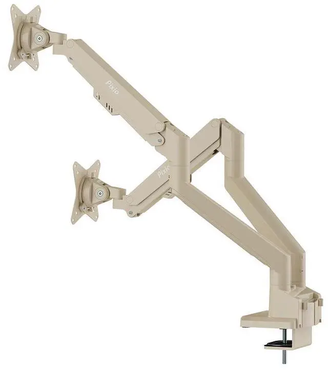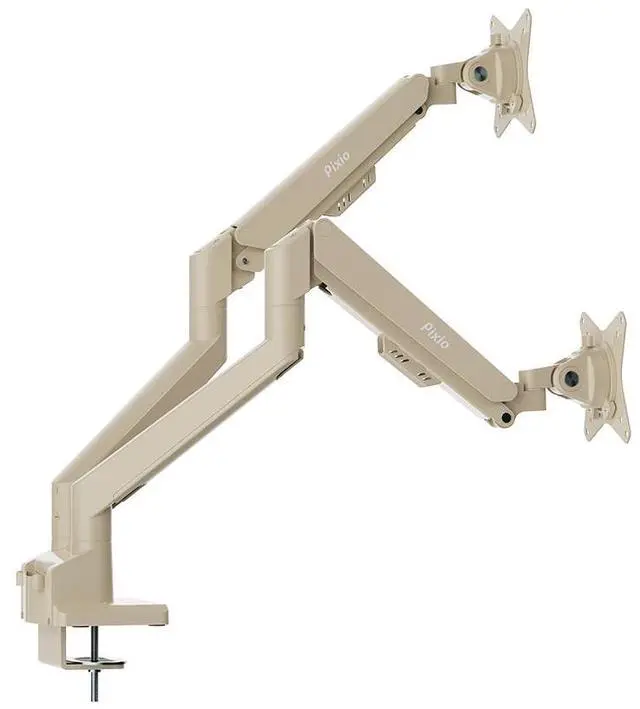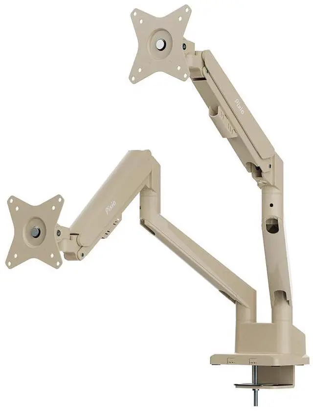 Pixio PS1D Wave Beige Dual Monitor Arm Stand Desk Mount - Fits up to 32 inch Monitors and up to 19.8lbs, VESA Compatibility and Integrated Cable Management Beige