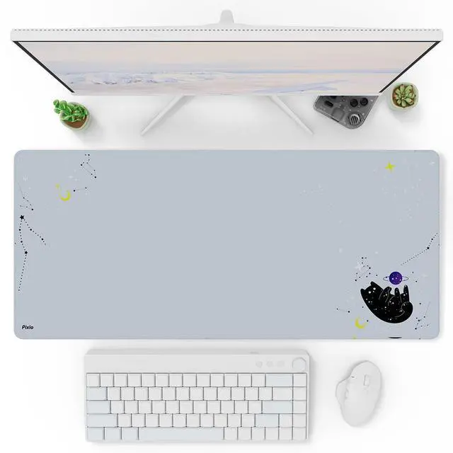 Pixio Mouse Pads - 36 x 16 inch XXL Space Kitty Cat Blue Multifunctional Large Desk Mats for Gaming, Office, Desktop Anti-slip Waterproof Washable Computer Mouse Mat