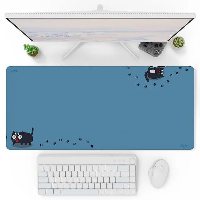 Pixio Mouse Pads - 36 x 16 inch XXL Deep Blue Cats Multifunctional Large Desk Mats for Gaming, Office, Desktop Anti-slip Waterproof Washable Computer Mouse Mat