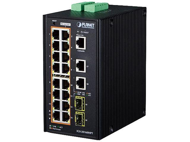 Planet IGS-20160HPT Industrial 16-Port 10/100/1000T 802.3at PoE + 2-Port 10/100/1000T + 2-Port 100/1000X SFP Managed Switch (-40 - 75 degrees C)