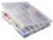 Compartment Box, Number of Compartments 24, Number of Removable Dividers 0, Outside Height 2 1/4 in, Outside Length 11 1/2 in, Outside Width 14 1/4 in, Material Polypropylene, Color Clear, Latch Type Molded, Latch Color Clear, Includes 24 Fixed Compartments, ESD Conductive No, Removable Dividers No. This item has been restricted from sale in the following state (s): []