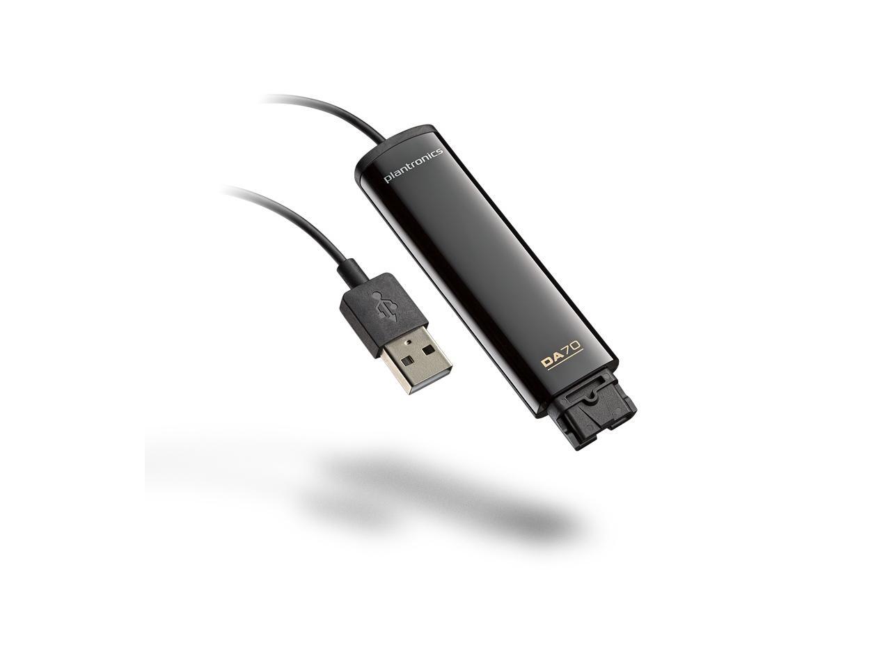 Connects to PC via USB and Plantronics QD-equipped analog headsets