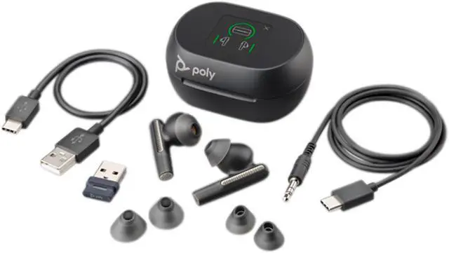 Poly Voyager Free 60+ Teams Wireless Earset - USB-A Dongle - True Wireless - Bluetooth - 98.4 ft - 20 Hz - 20 kHz - Earbud - Binaural - In-ear - Noise Canceling - Carbon Black 216066-01