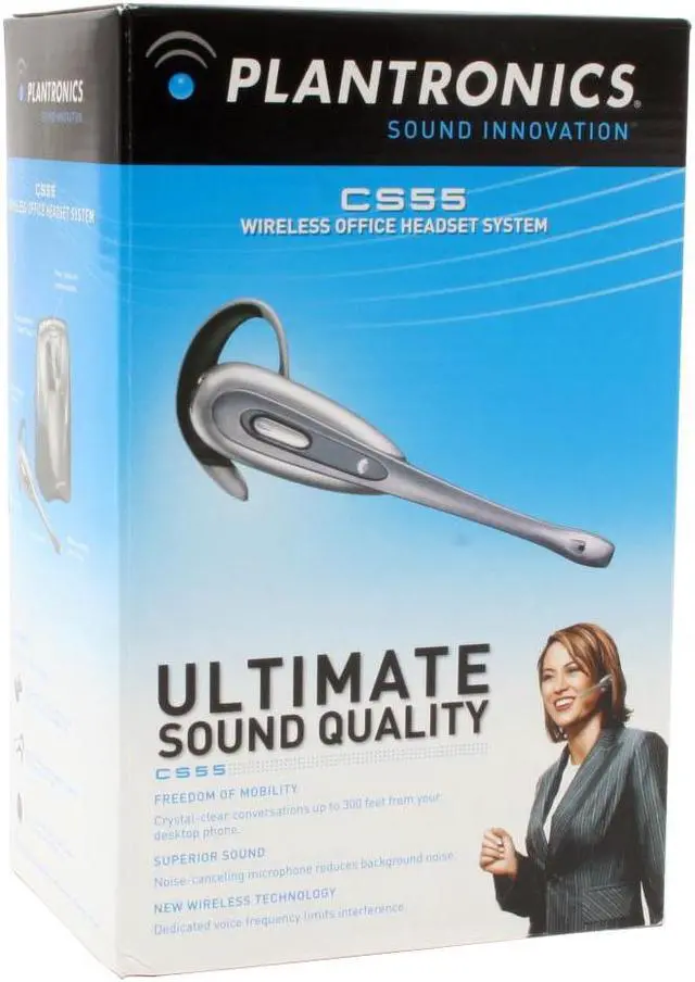From Plantronics you can get the next generation of wireless office headsets. The CS55 brings the ultimate in freedom and convenience. With 10 hours of talk time you can wear this comfortable unit all day. A 300 foot range lets you roam the office free from the tether a phone cord.
