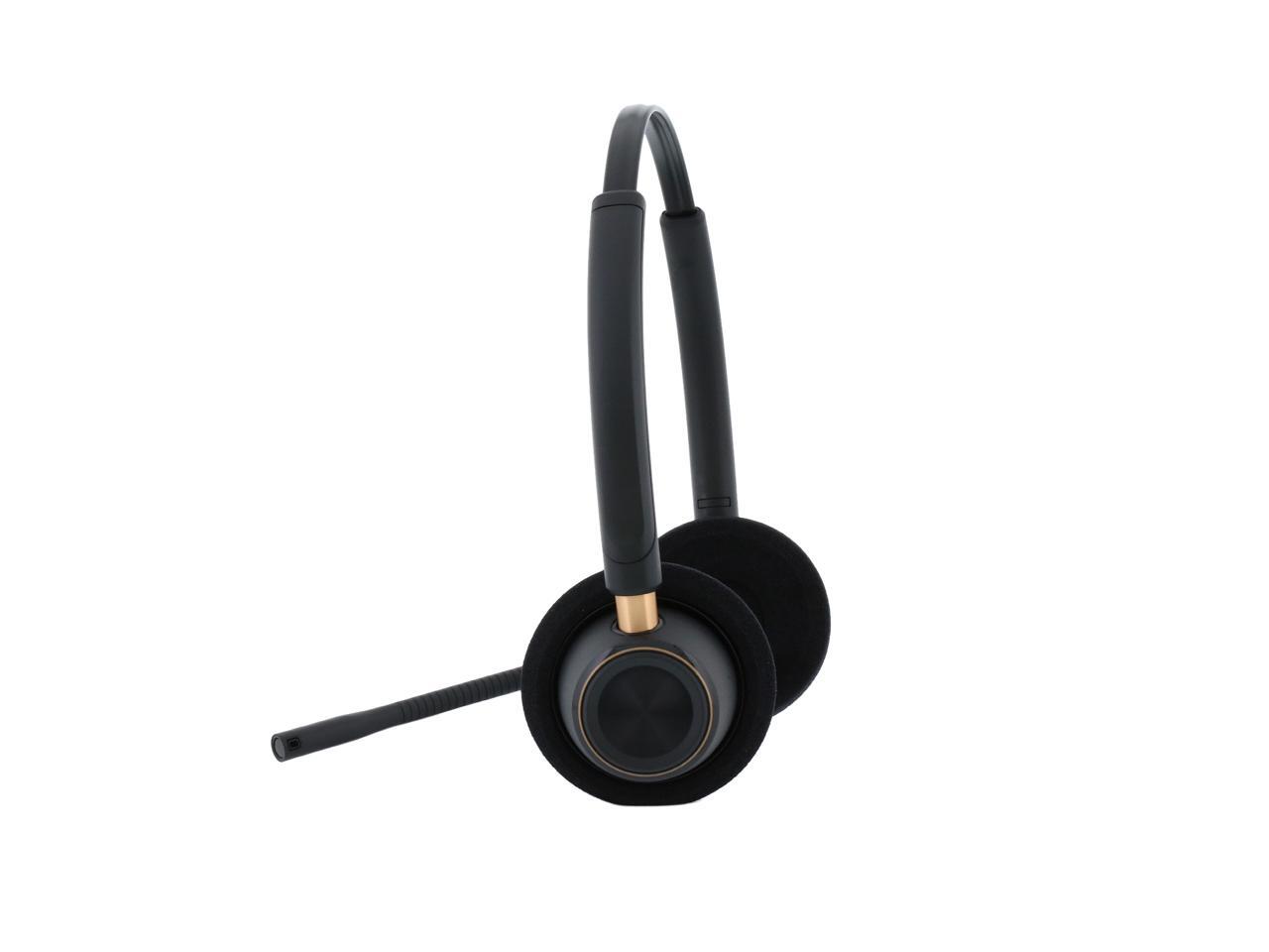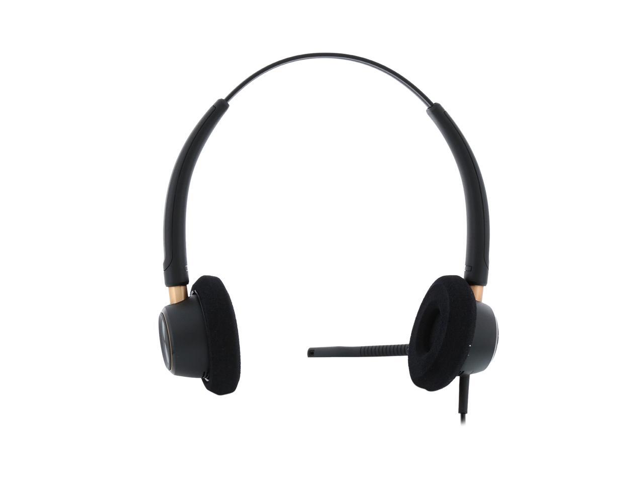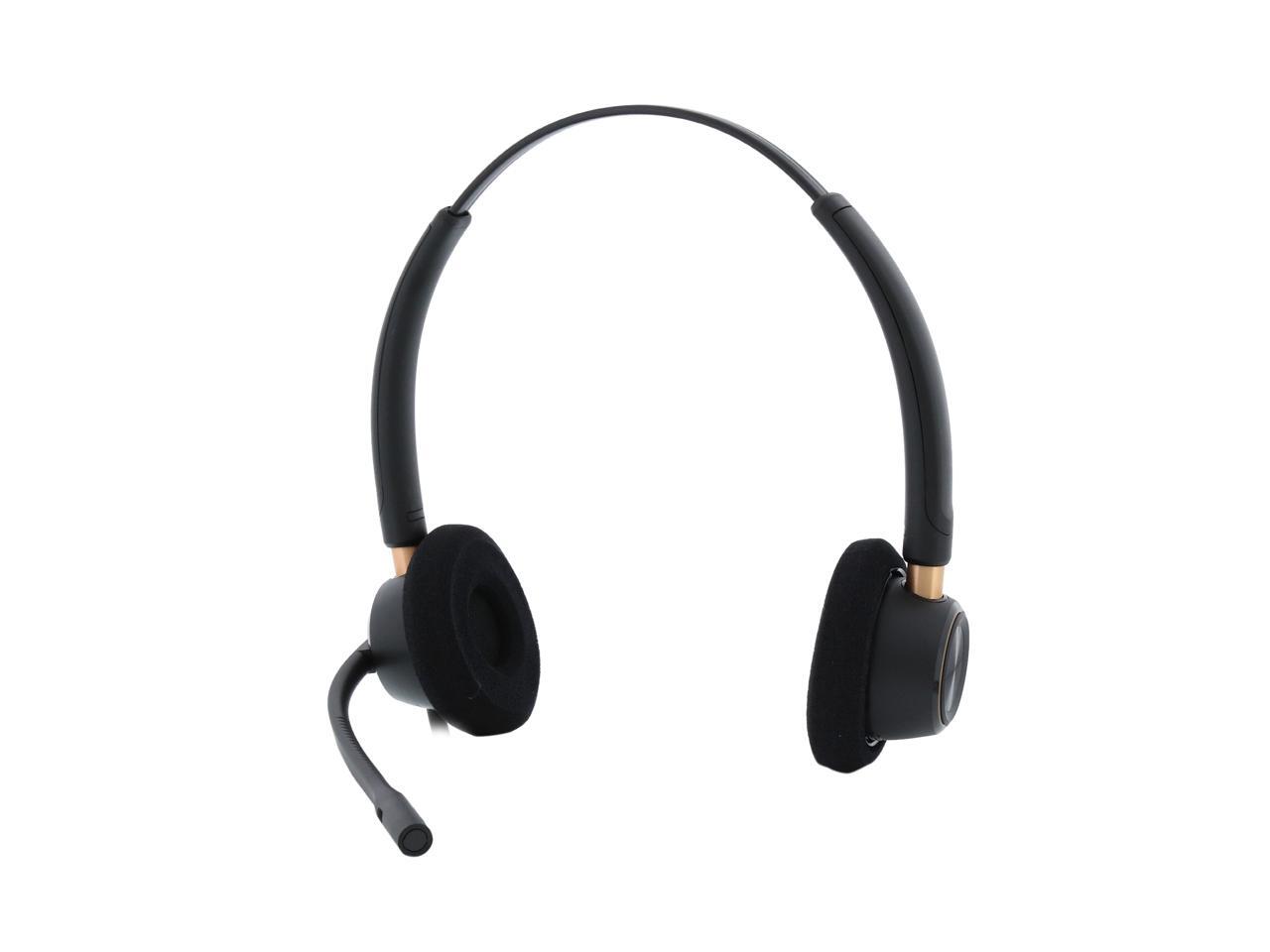 Binaural, corded headset covers both ears to provide greater focus and concentration by blocking background noise. Soft ear cushion prevents irritation for all-day wearing comfort. Noise-canceling technology makes calls sharp and clear. Metal joints enhance the stability at the critical areas for lasting reliability. Flexible mic with visual and tactile positioning guides allows precise positioning.