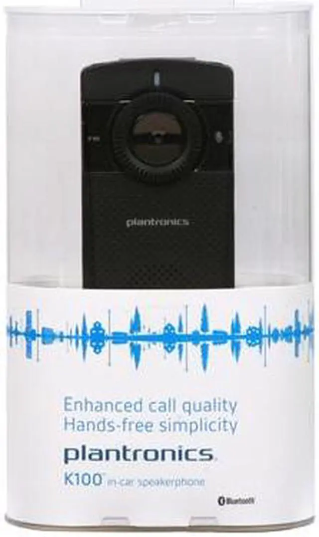 Plantronics K100 In-car Speakerphone... Talk hands free and hear clearly with the new Plantronics K100 in-car speakerphone. Its slim profile is designed to live on your car's visor, and deliver the audio excellence you expect from Plantronics. Broadcast calls, GPS navigation and music from your mobile phone via the K100 speakerphone's Bluetooth connection. Dual microphones, noise reduction technology, voice alerts and large, easy-to-locate buttons all work to provide clear conversations and an easy calling experience. Or maybe you're just listening rather than having a conversation? Then use the dedicated mute button to go silent with one touch. With convenience like this, you may never leave your car. Built-in Devices: FM Transmitter Built-in Devices: Microphone Built-in Devices: Speaker Package Contents: K100 Car Hands-free Kit In-Car Charger Built-in Devices: FM Transmitter Built-in Devices: Microphone Built-in Devices: Speaker Product Type: Car Hands-free Kit Product Type: Car Hands-free Kit Compatibility: Cellular Phone Bluetooth Enabled Manufacturer Part Number: K100 Limited Warranty: 1 Year Connectivity Technology: Wireless Connectivity Technology: Wireless Features: Voice Recognition Features: Noise Reduction Features: Speakerphone Manufacturer: Plantronics, Inc Product Model: K100 Product Name: K100 Car Hands-free Kit Brand Name: Plantronics Brand Name: Plantronics Bluetooth: Yes Bluetooth: Yes