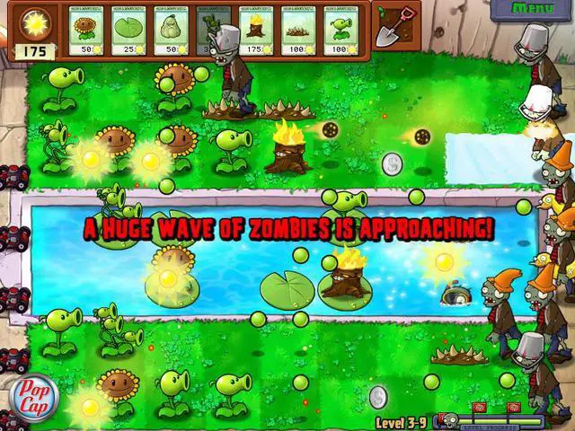 Get ready to soil your plants in an all-new action-strategy game from PopCap! A mob of fun-loving zombies is about to invade your home, and your only defense is an arsenal of 49 zombie-zapping plants. Use peashooters, wall-nuts, cherry bombs and more to slow down, confuse, weaken and mulchify 26 types of zombies before they can reach your front door. Each zombie has its own special skills, so you’ll need to think fast and plant faster to combat them all. But be careful how you use your limited supply of greens and seeds: as you battle the fun-dead, obstacles like a setting sun, creeping fog and a swimming pool add to the challenge. And with five game modes to dig into, the fun never dies!