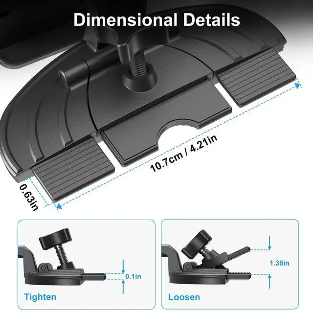 | 1 holder + 1 suction cup+1 pad | 1 holder + 1 arm | 1 holder + 1 arm with clamp | 1 holder + 2 straps | 1 holder + 1 arm + 4 screws |