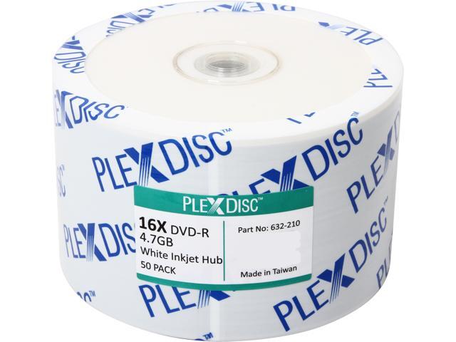 PlexDisc 4.7GB 16X DVD-R White Inkjet Printable 50 Packs Disc Model 632-210