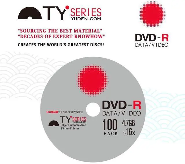The TY Series CD and DVD's uses the same dye, materials, technology, and procedures as the authentic original Japanese recordable optical discs from years past. Working with engineers that created the 1st write once optical discs, instilled the know how and QC procedures to ensure the best quality.