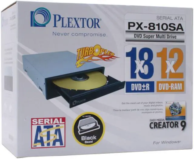 Plextor's PX-810SA/SW-BL DVD SuperMulti SATA drive gives you accurate, consistent 18X burns on single layer DVD±R media, 10X burns on dual-layer media, and 12X on DVD-RAM media. Whether you're burning hard copy backups, or reading and writing music, photos, software, or presentation documents, you get coaster-free writing and blazing fast reading.